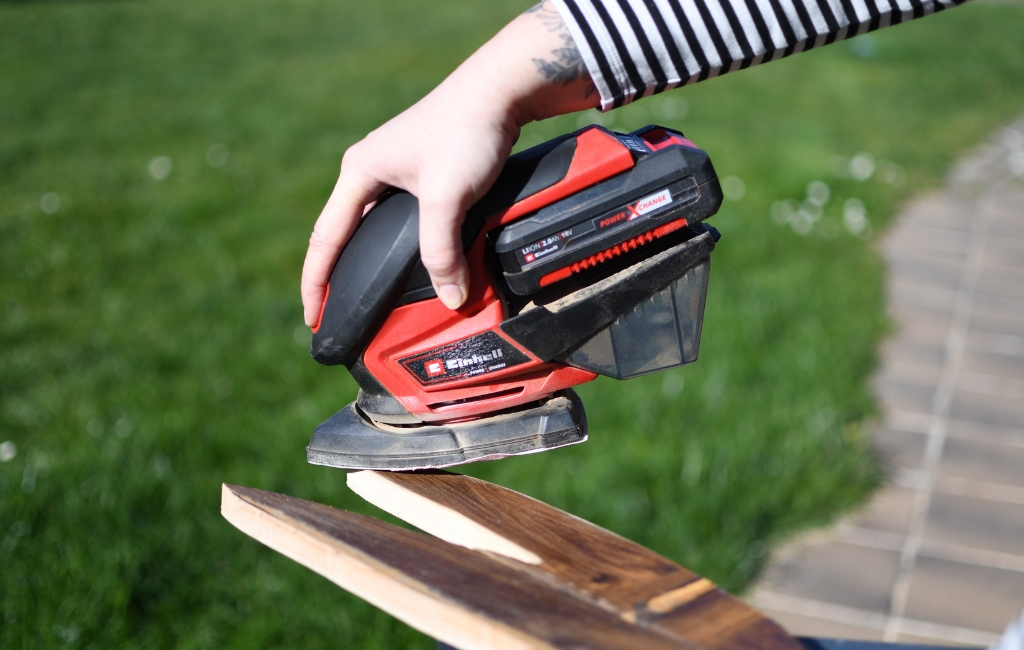 Für den letzten Schliff kommt der Akku-Multischleifer zum Einsatz. Damit schleifst du alle Kanten gründlich ab und entfernst Splitter. Dieser Schritt ist besonders wichtig, um Verletzungen zu vermeiden und eine saubere Oberfläche zu erhalten. Wenn du möchtest, kannst du die Hasen anschließend noch streichen, lasieren oder naturbelassen mit einem Holzschutz versehen – je nachdem, ob sie draußen oder drinnen stehen sollen.